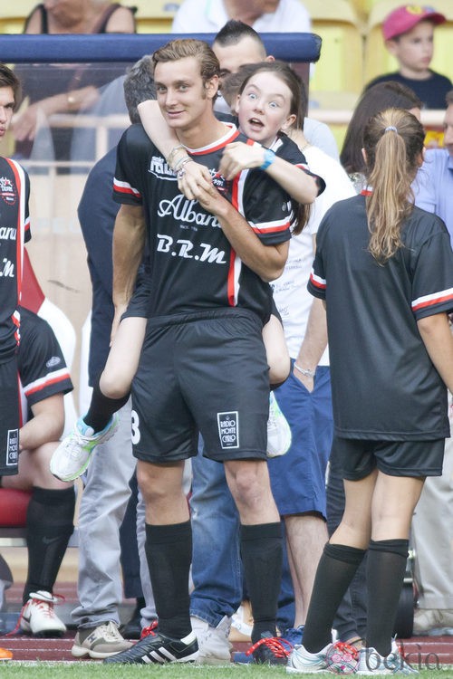 La Princesa Alexandra de Hannover juega con su hermano Pierre en un partido de futbol por Haití en Mónaco.