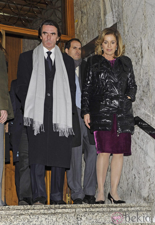 El expresidente José María Aznar y la alcaldesa de Madrid Ana Botella en la capilla ardiente de Manuel Fraga.