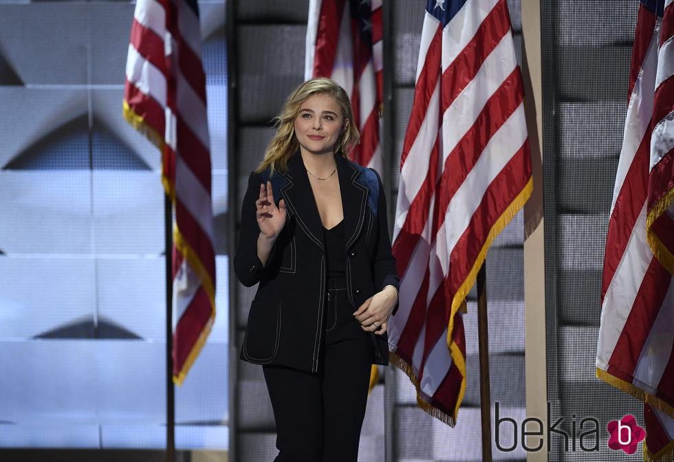 La actriz Chloe Moretz fue una de las personalidades famosas que aistieron a una convención celebrada con motivo de la candidatura de Hillary Clinton a la presidencia de los Estados Unidos.