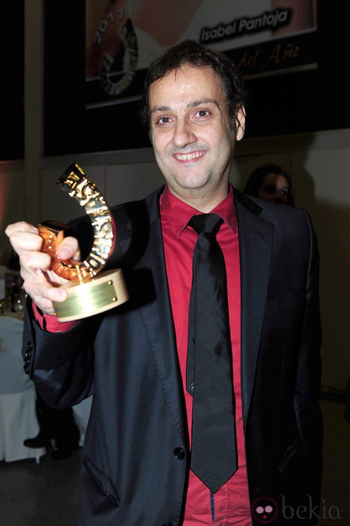 El escritor Albert Espinosa posa con su galardón en los Premios Protagonistas 2011 celebrados en Barcelona.