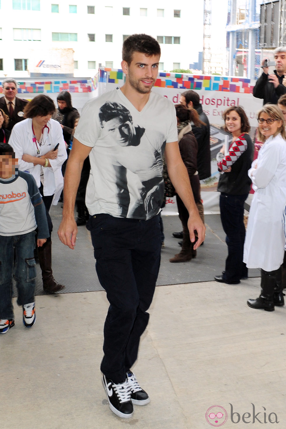 El futbolista Gerard Piqué visita a los niños enfermos que están ingresados en un hospital de Barcelona