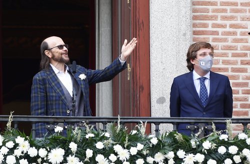 Santiago Segura es fotografiado junto al Alcalde de Madrid, José Luis Martínez Almeida, durante el pregón de las fiestas de San Isidro.