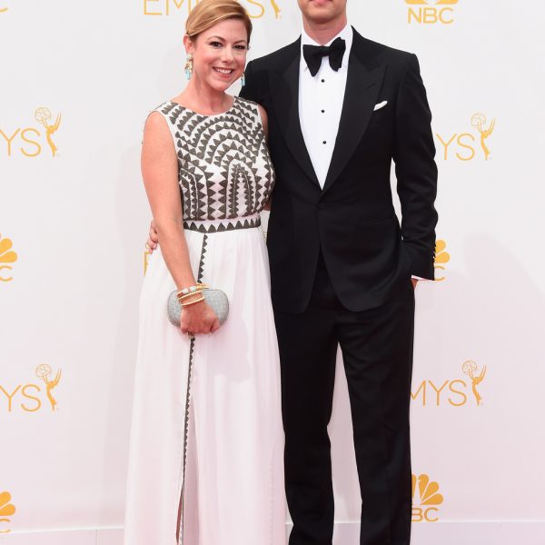 Colin Hanks y Samantha Bryant en la alfombra roja de los Premios Emmy 2014