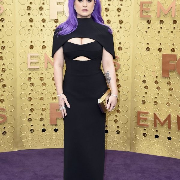 La actriz y cantante Kelly Osbourne con un vestido negro de Brandon Maxwell en la alfombra de los premios Emmy 2019.