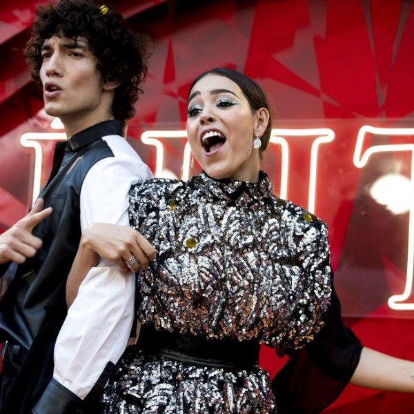 Los actores Danna Paola y Jorge López pasándoselo en grande en el estreno de la segunda temporada de 'Élite' de Netflix.