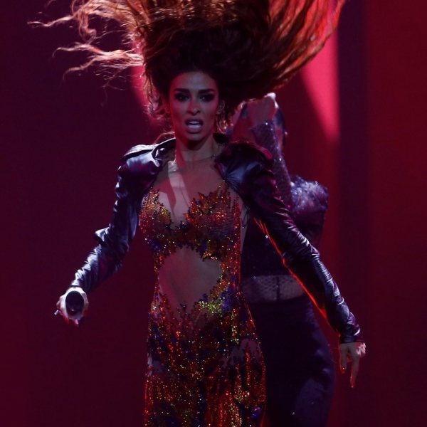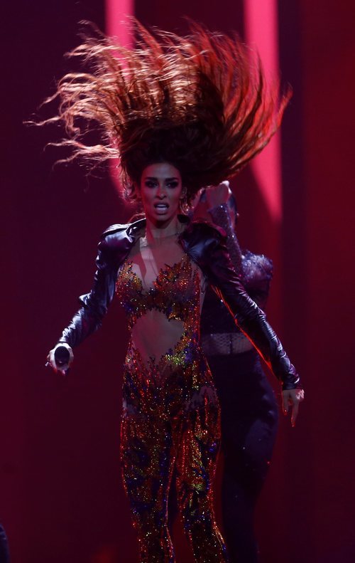 La representante de Chipre Eleni Foureira actuando con su canción 'Fuego' en la final de Eurovisión 2018 en Lisboa.