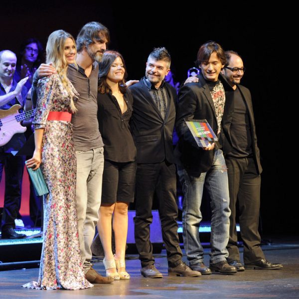 Vanesa Romero, Nacho Guerreros, Alberto Caballero y Jordi Sánchez reciben un premio por 'La que se avecina' en la ceremonia de clausura del FesTVal de Vitoria.