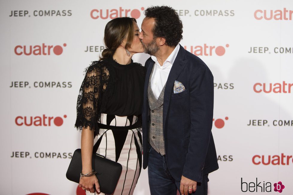 Los actores Cristina Alarcón y José Luis García Pérez besándose en la fiesta de Cuatro para presentar la temporada 2017