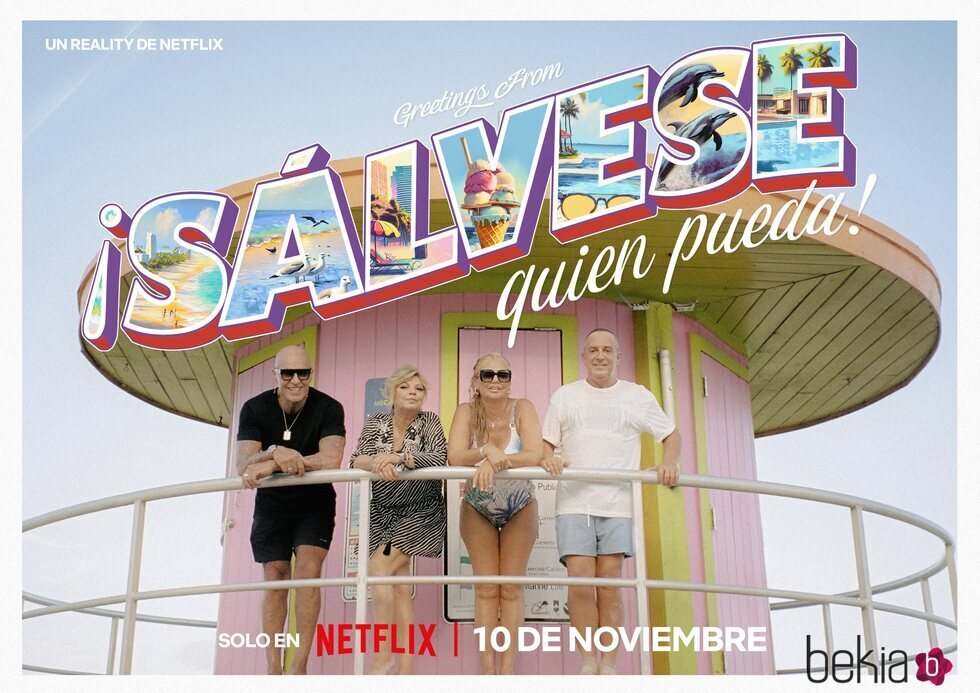 Kiko Matamoros, Terelu, Belén Esteban y Víctor Sandoval posa en una de las fotografías promocionales de Netflix para anunciar el estreno de '¡Sálvese quien pueda!', la continuación de 'Sálvame' tras su cancelación.