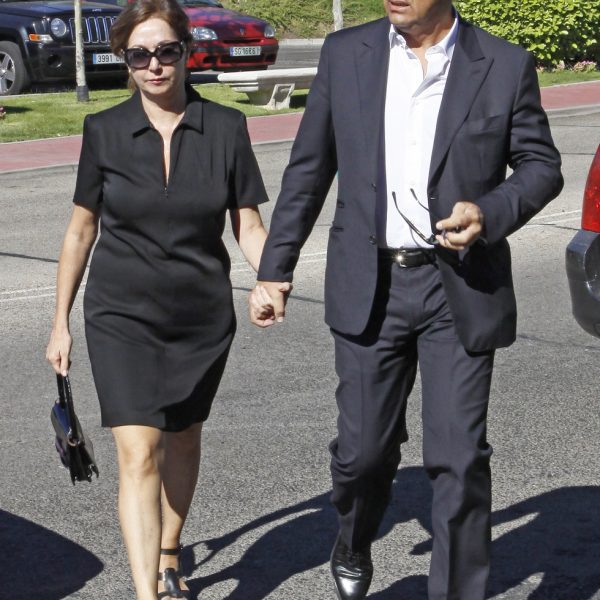 La periodista Ana Rosa Quintana y su marido, Juan Muñoz, asisten al tanatorio de Tres Cantos de Madrid donde se celebró el funeral de Pedro Rodríguez, director de Cuarzo.