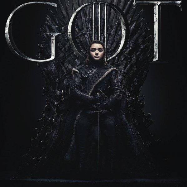 Foto del nuevo cartel de la temporada final de Juego de Tronos de Arya Stark en el que aparece sentada en elTrono de Hierro.