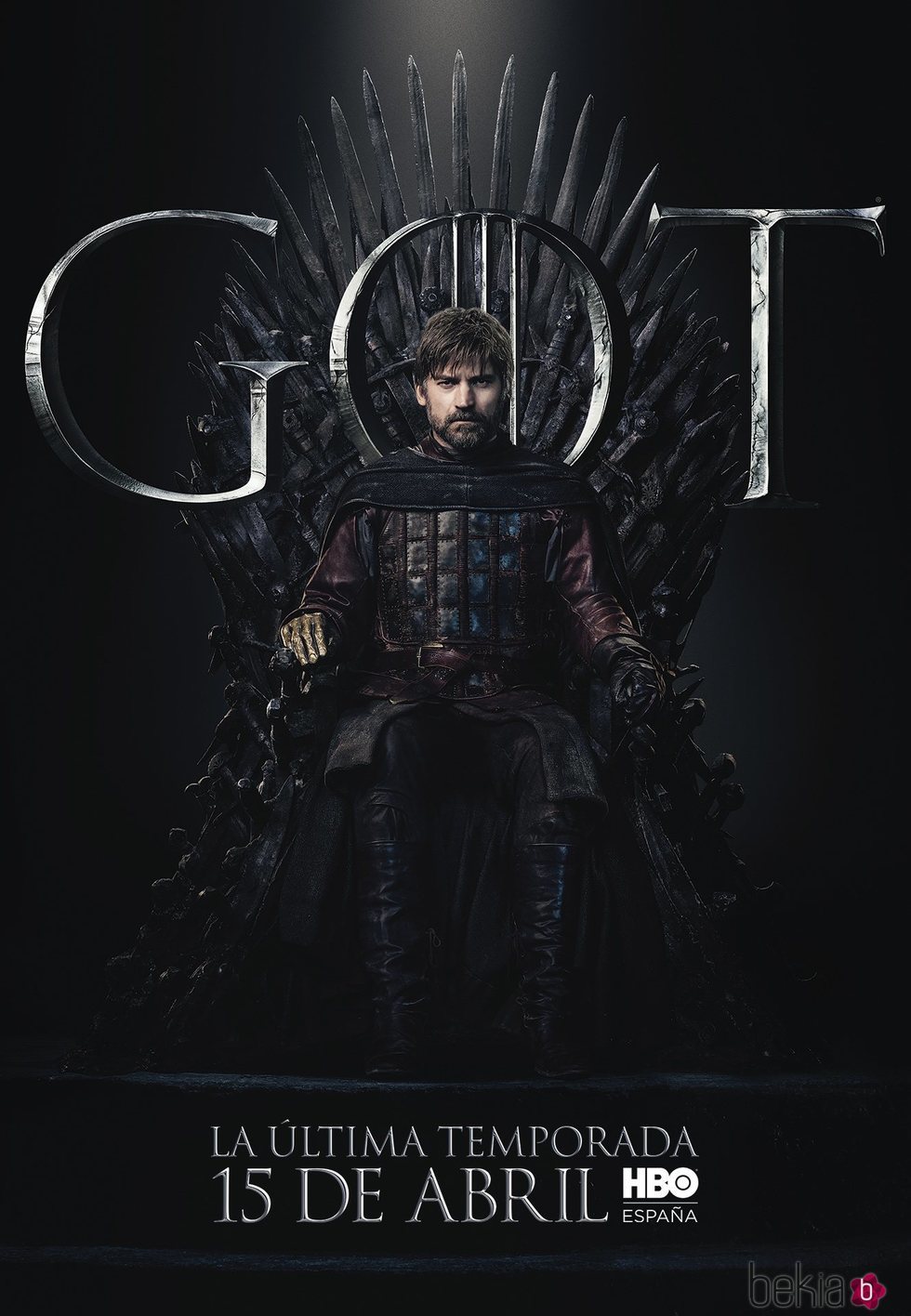 Foto del nuevo cartel de la temporada final de Juego de Tronos en la que se ve a Jaime Lannister sentado en el Trono de Hierro.