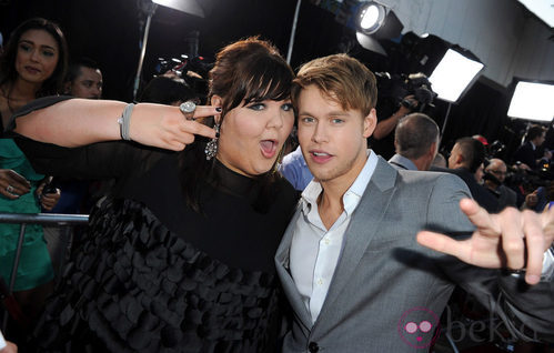 Los actores Ashley Fink (Lauren Zizes) y Chord Overstreet (Sam Evans) en la première de la serie 'Glee: The 3D Concert Movie'.