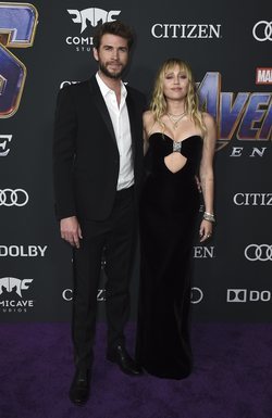 Miley Cyrus y Liam Hemsworth posando en la premiere de 'Vengadores: Endgame' (Avengers Endgame) de Los Ángeles en abril de 2019