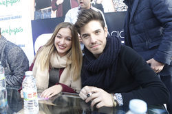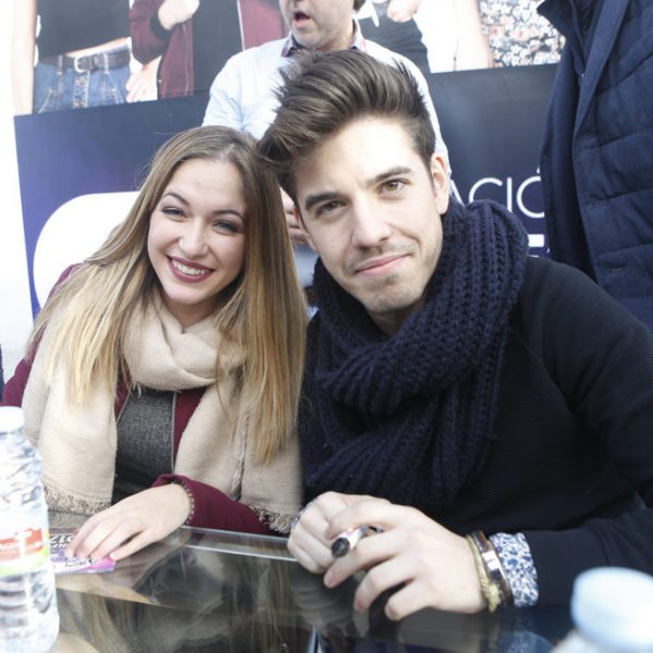 Mireya y Roi posan sonrientes durante la firma de discos de 'Operación Triunfo 2017' que ha tenido lugar en Madrid.
