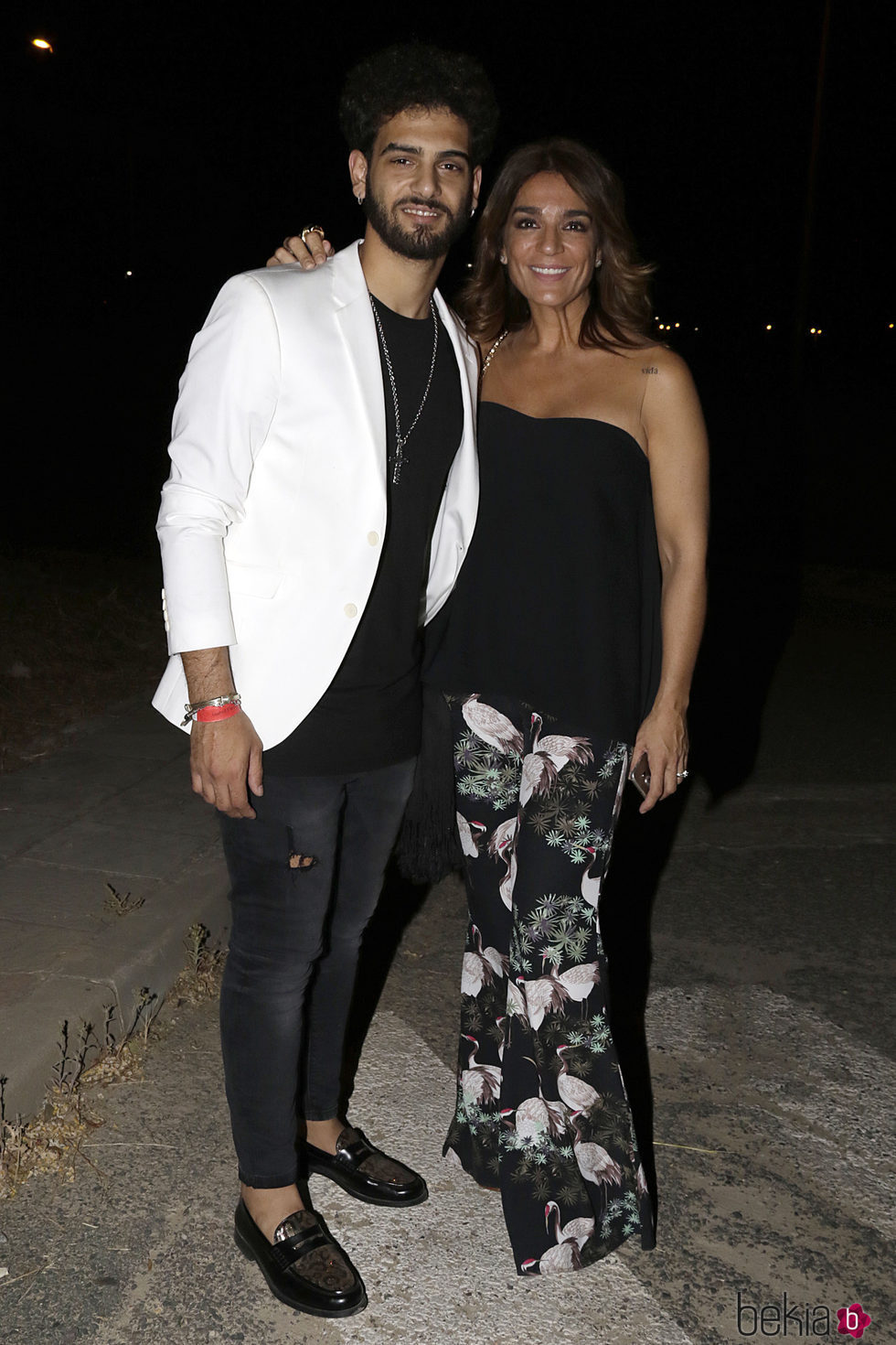 La excolaboradora de 'Sálvame' Raquel Bollo y su hijo Manuel Cortés en los alrededor del Estadio de La Cartuja de Sevilla tras asistir al concierto de Isabel Pantoja