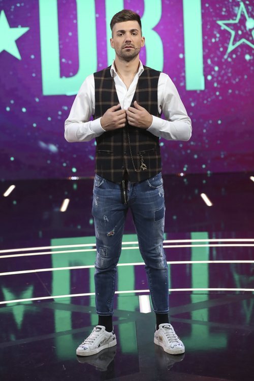 El tercer finalista de 'Gran Hermano DÚO' Alejandro Albalá posando en el plató de Telecinco antes del debate final del programa.