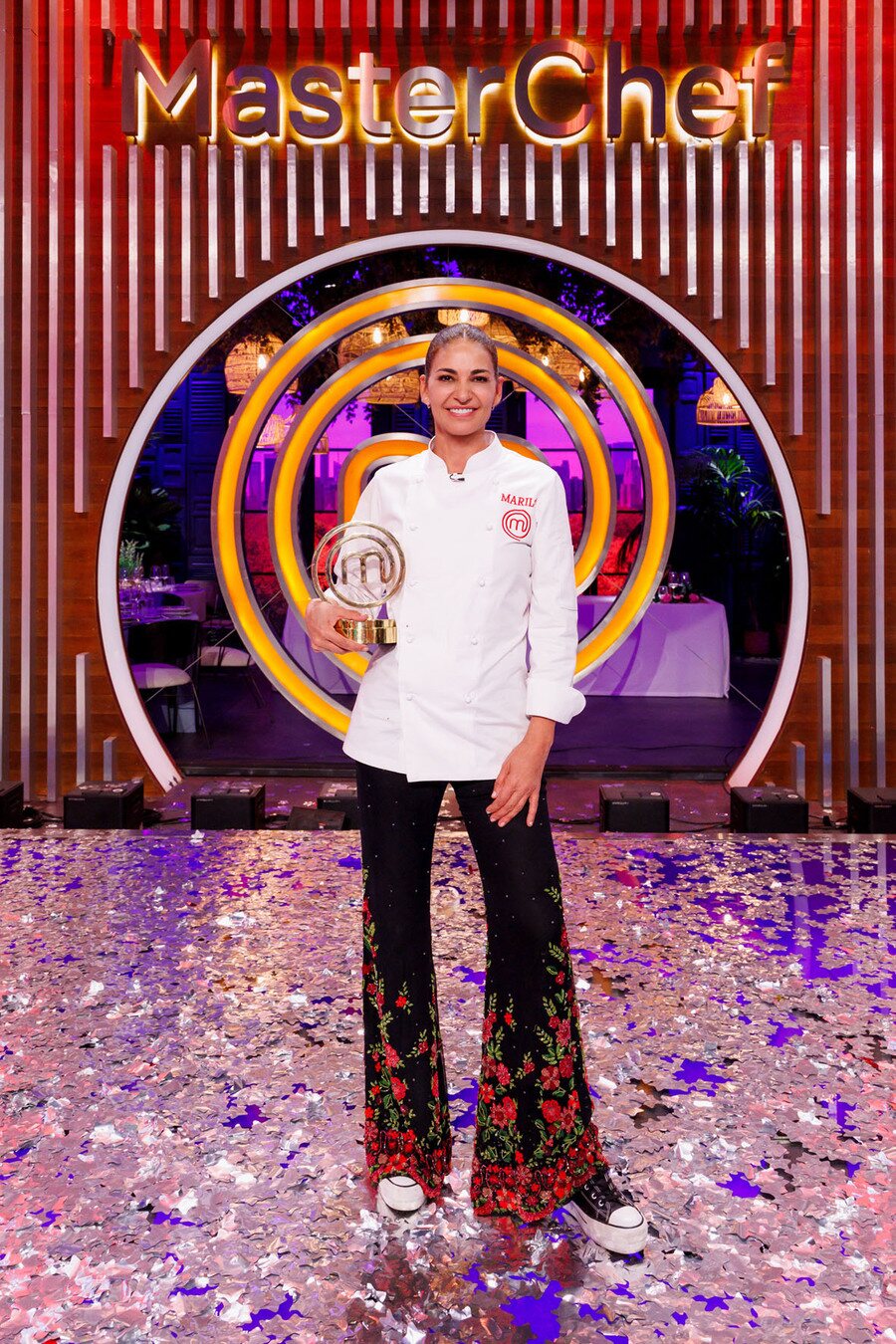 Mariló Montero es fotografiada posando de lo más sonriente como ganadora de la décima edición de 'Masterchef Celebrity'.